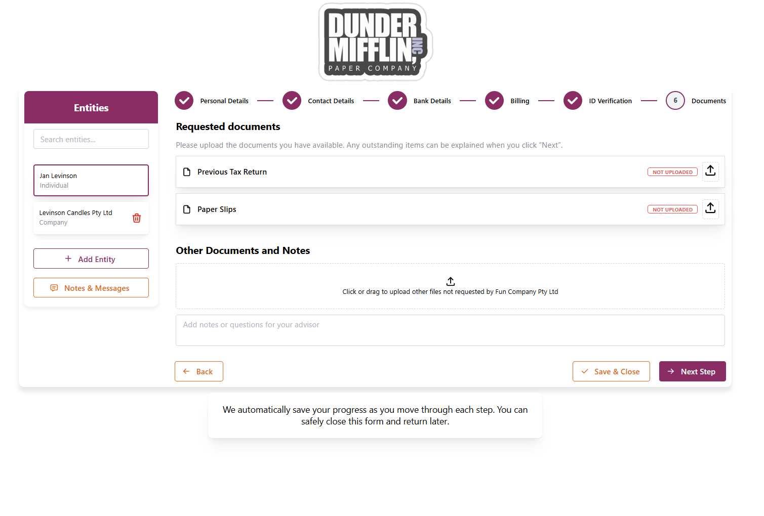 Need Documents from your new client or Previous Accountant? OnboardMe offers document sharing capabilities as part of the workflow