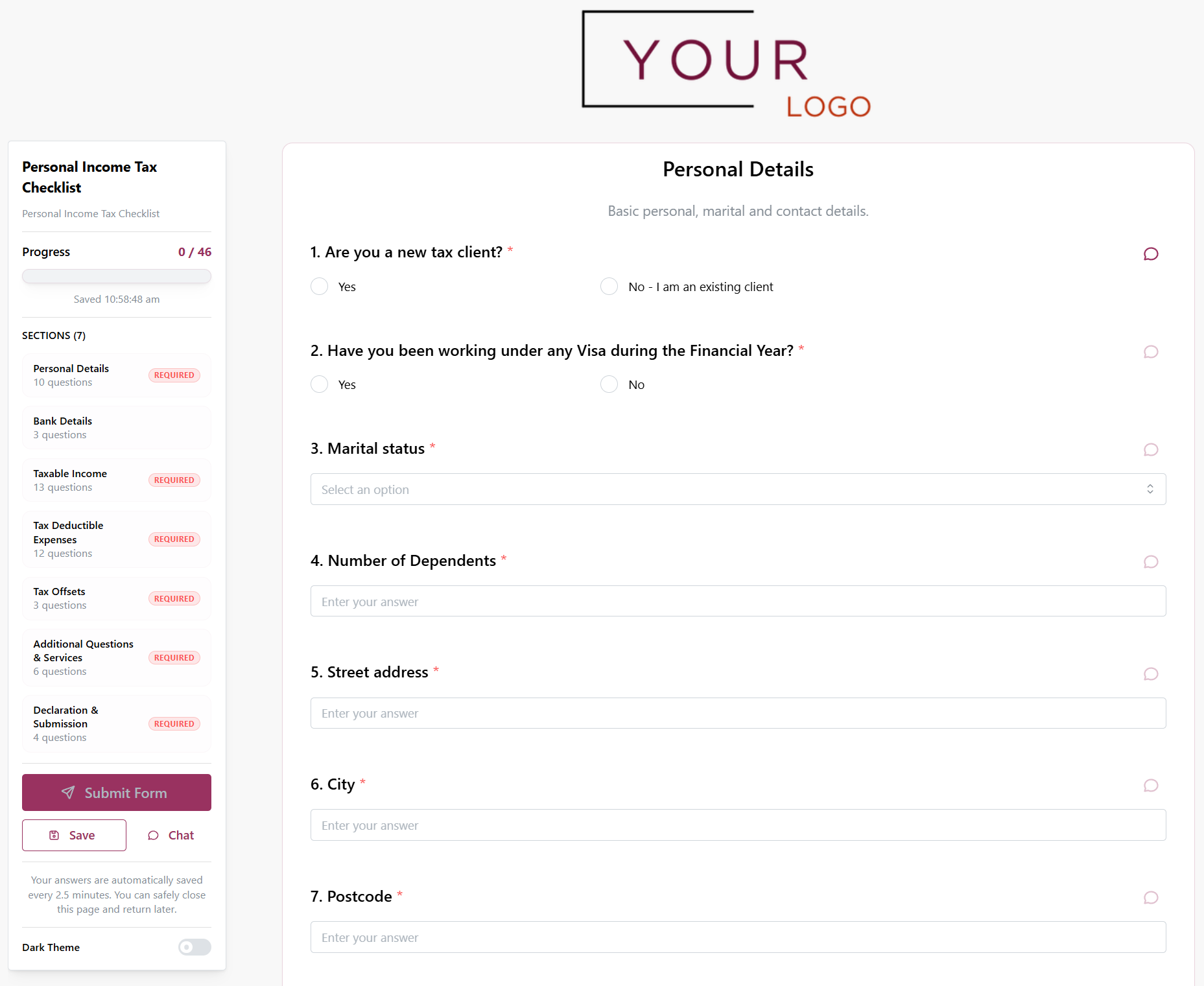Design forms that match how your firm works — no rigid templates or one-size-fits-all fields.
